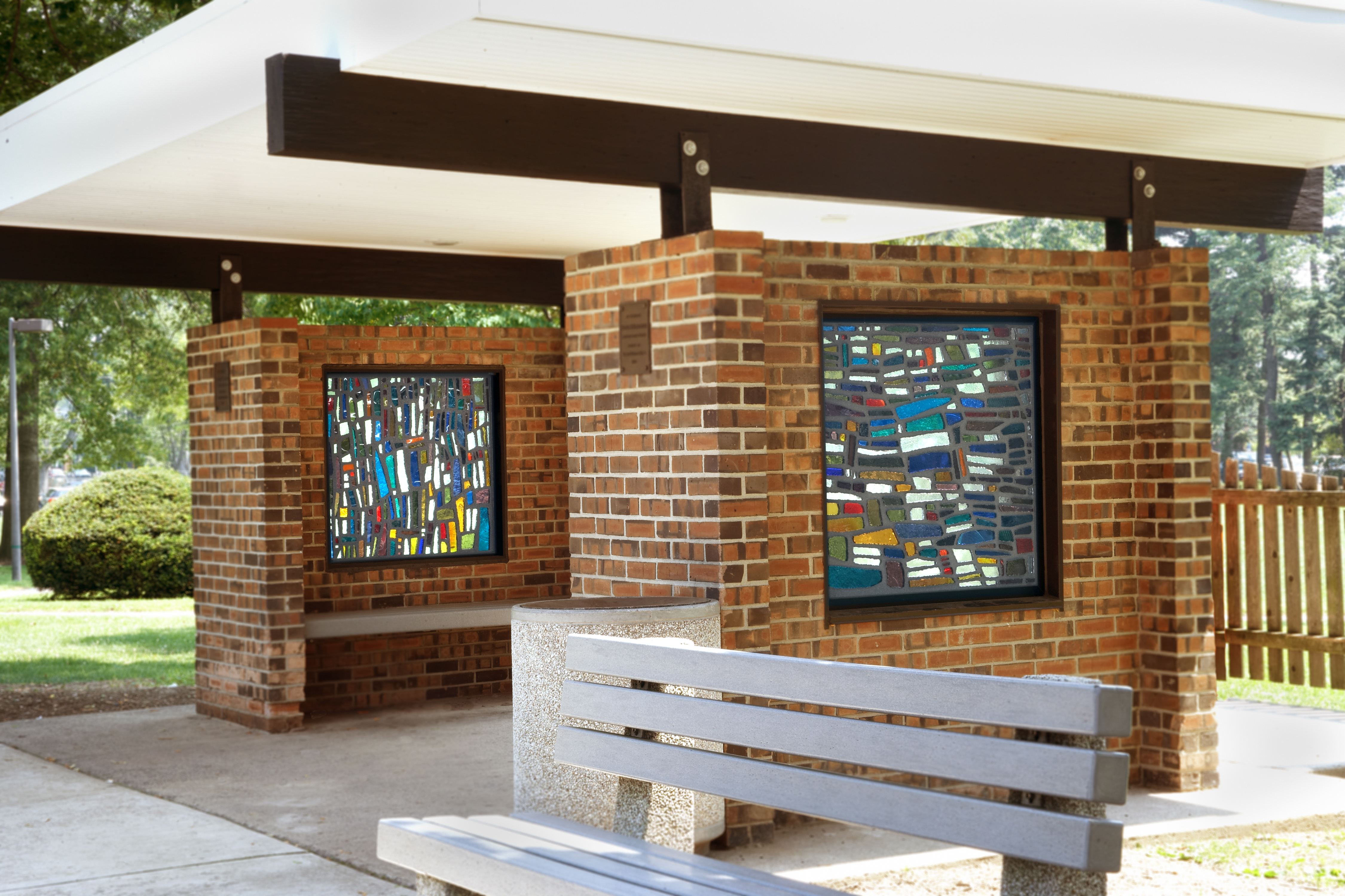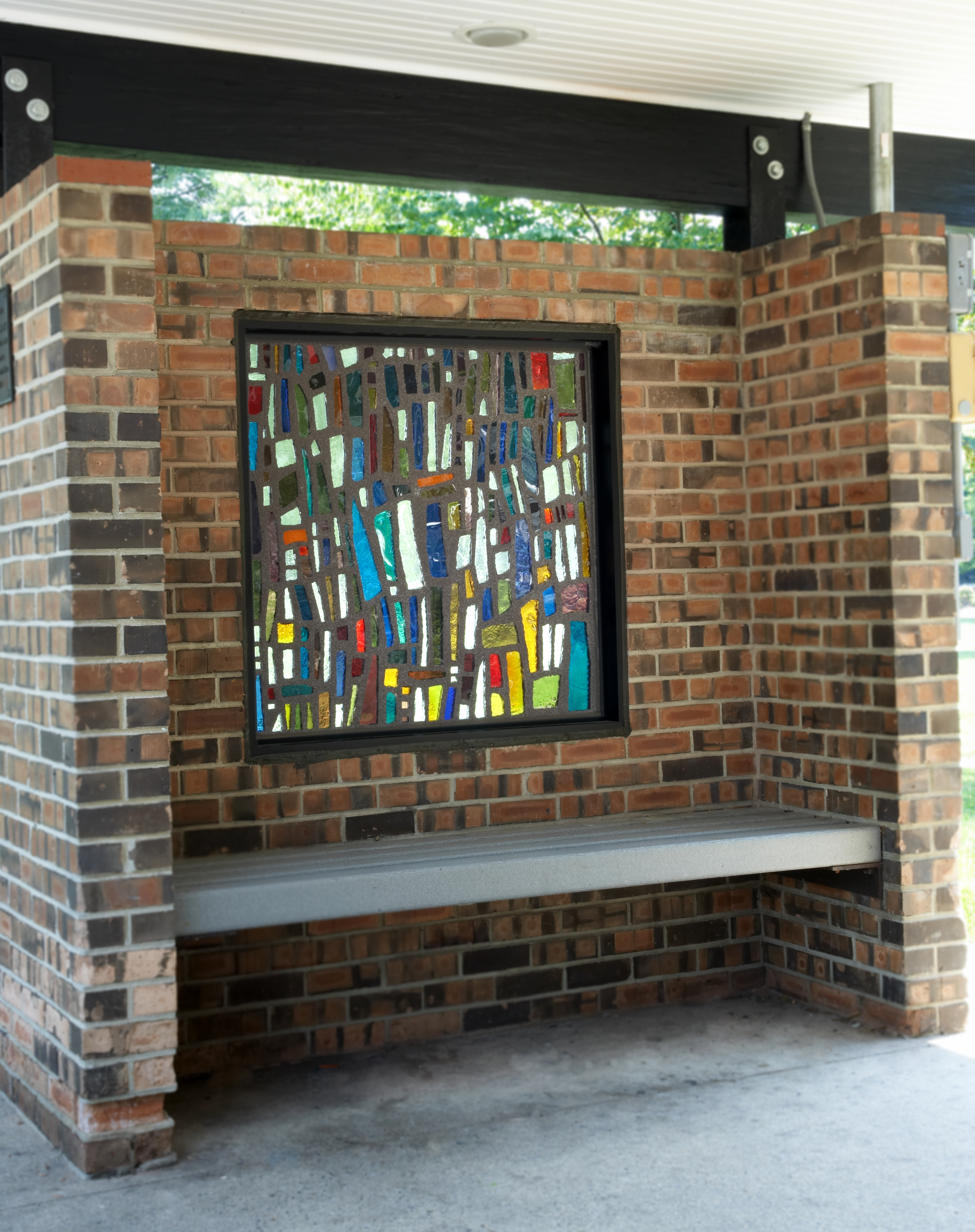 Two 4’ square faceted glass windows for a bus shelter in Summit, NJ. Commissioned by the City of Summit. Fabricated by Willet Hauser Architectural Glass. Installed March 2006.
